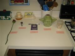 |  | When I emerged from my steam hydration cleansing (shower) Heather had prepared a surprise for me in the kitchen. See image at left!