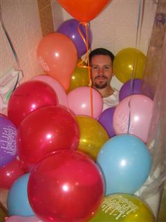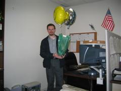 |  | Heather sent me flowers (Right) and Balloons (Left) at the office. They smelled pretty and floated. Still floating (and living) a week later! |  |