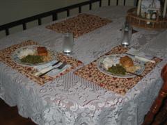 |  | For dessert, she whipped up a Pineapple Upside-Down Cake. That steaming pile of yum over on the right is what it looked like. |  |